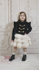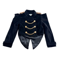 Elevate your little girl's fashion game with our Charlie Black Velour Jacket! The luxurious velour fabric and intricate gold embellishment add a touch of elegance, while the chain closure adds a trendy flair. She'll stand out in style and comfort.